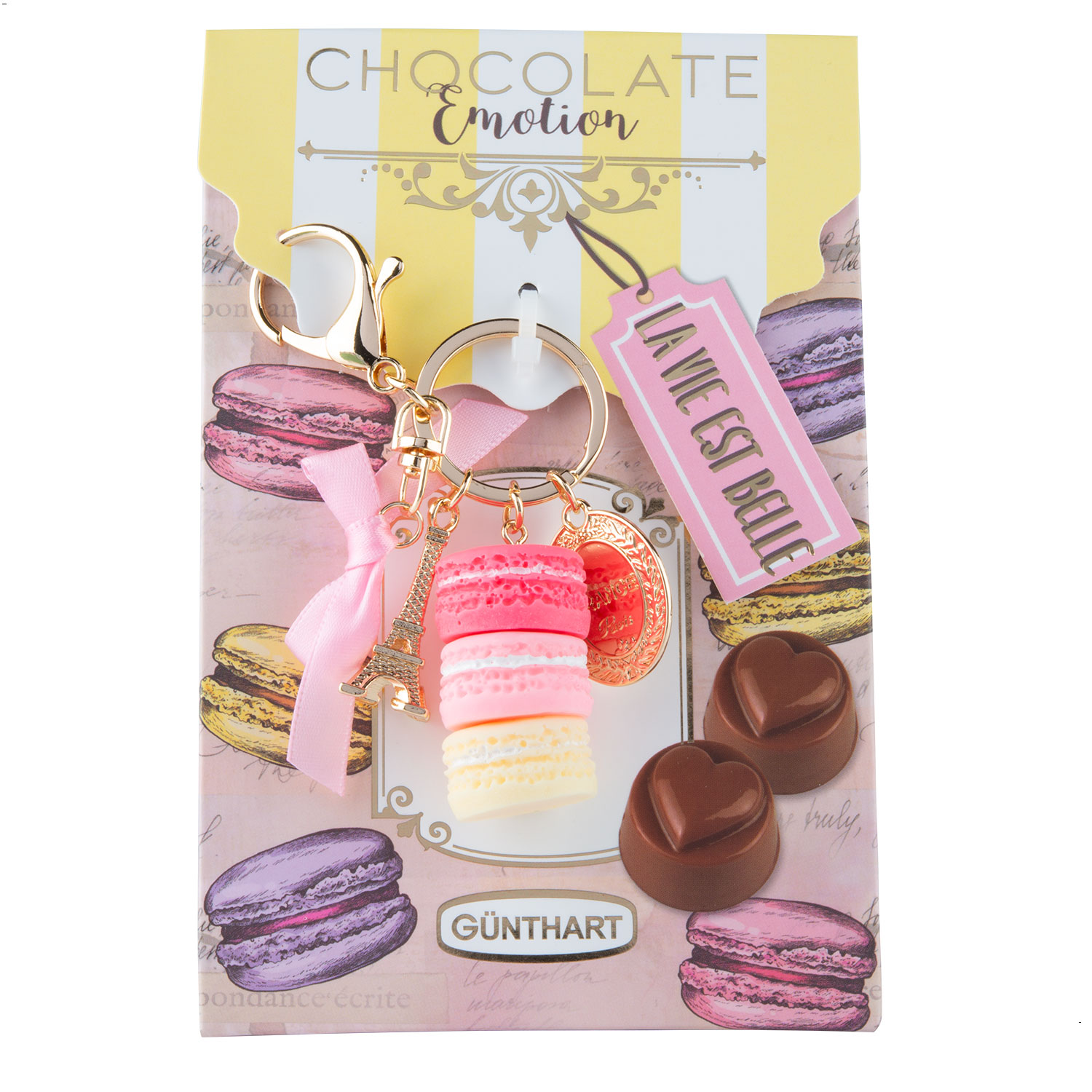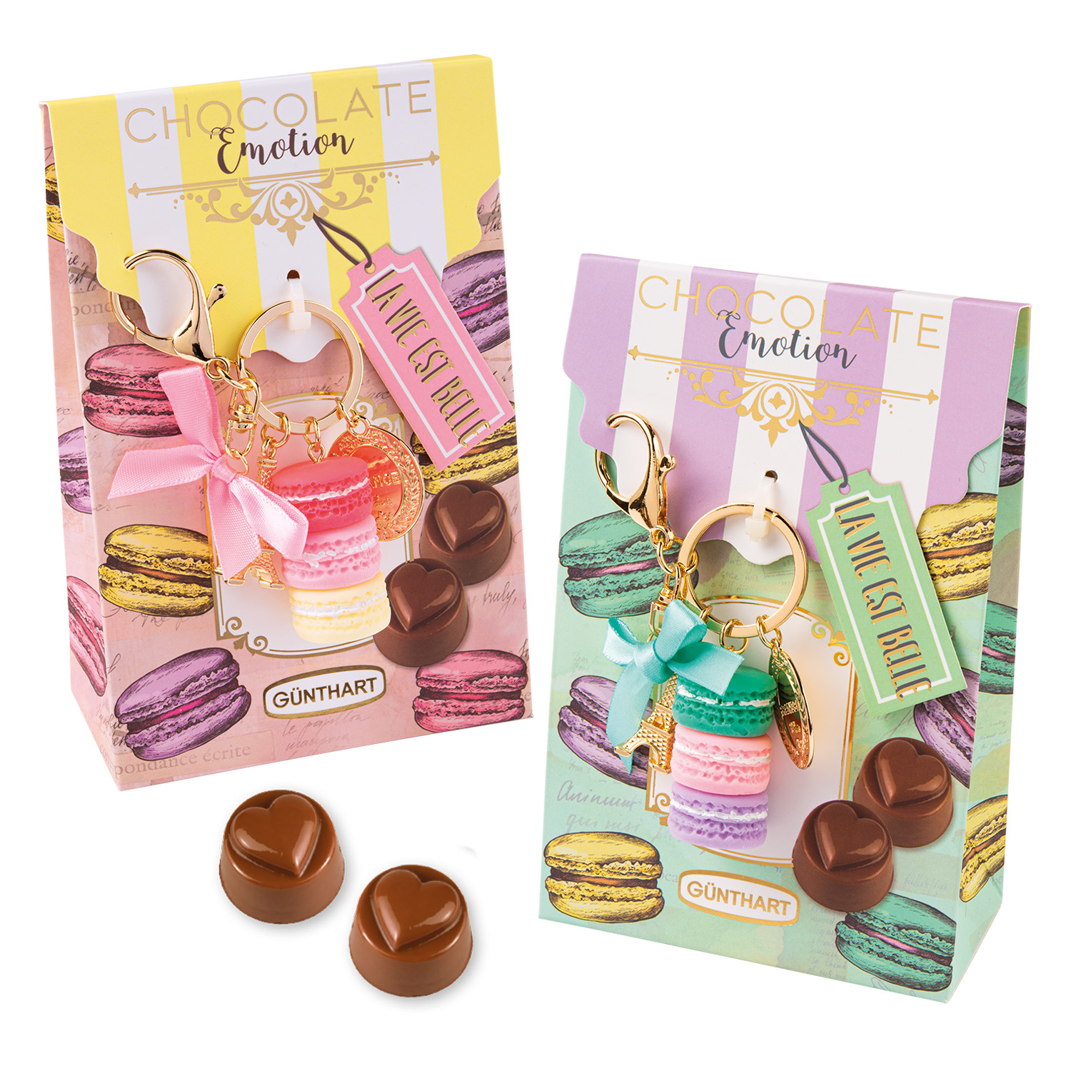 Die Günthart Macaron Anhänger genau das Richtige für dich. In dieser Box erhältst du 12 liebevoll gestaltete Anhänger in Form von Macarons, die in verschiedenen Farben sortiert sind.
