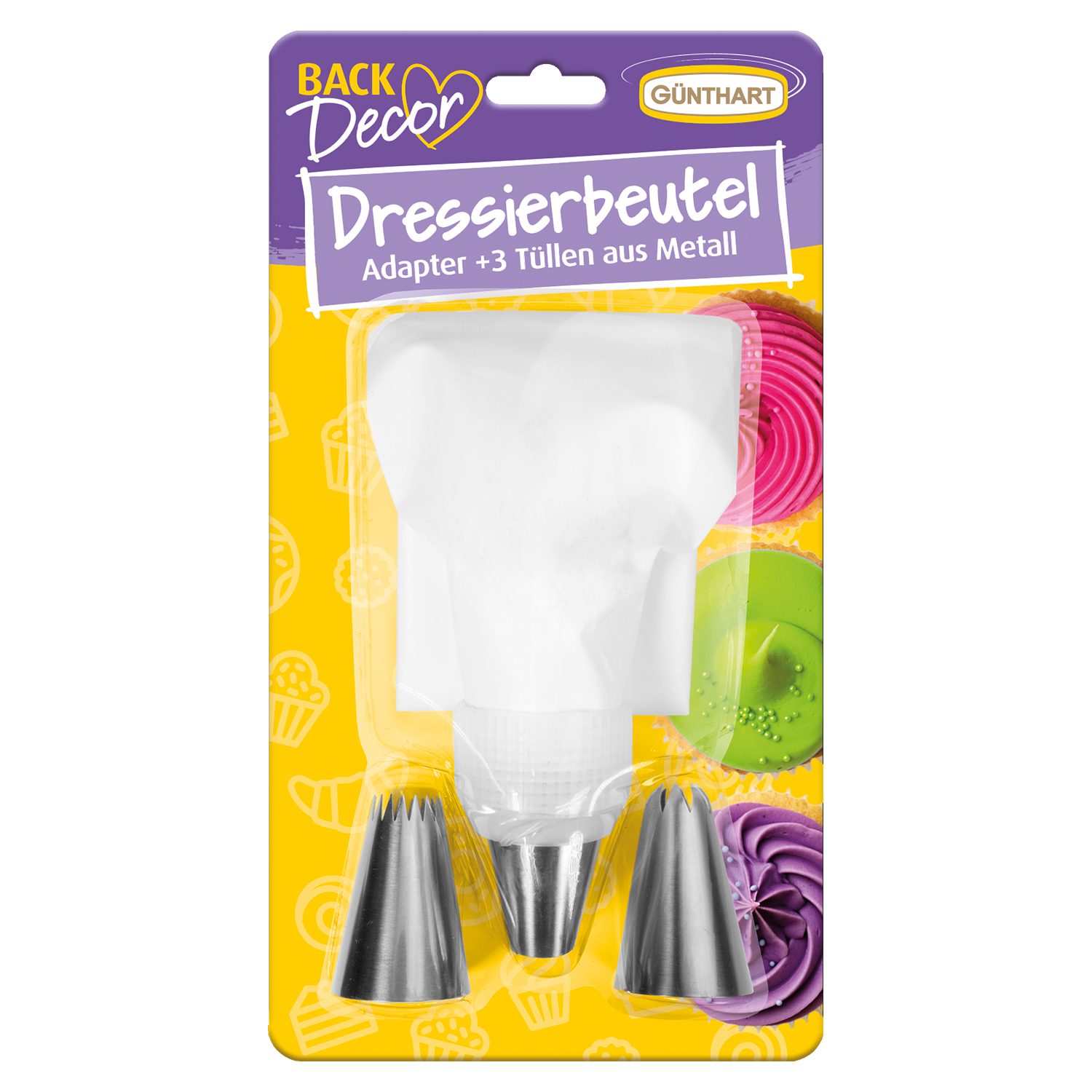 Dekorieren wie ein Profi: Mit dem Spritzbeutel-Set von Günthart BackDecor, bestehend aus 5 sets a 5 stabilen Einwegbeuteln und 3 wiederverwendbaren Tüllen, gelingt jede Verzierung im Handumdrehen. Ideal für Cremes, Sahne, Ganache und mehr – ein praktisches Set für kreative Hobbybäcker und Dekorationsliebhaber.