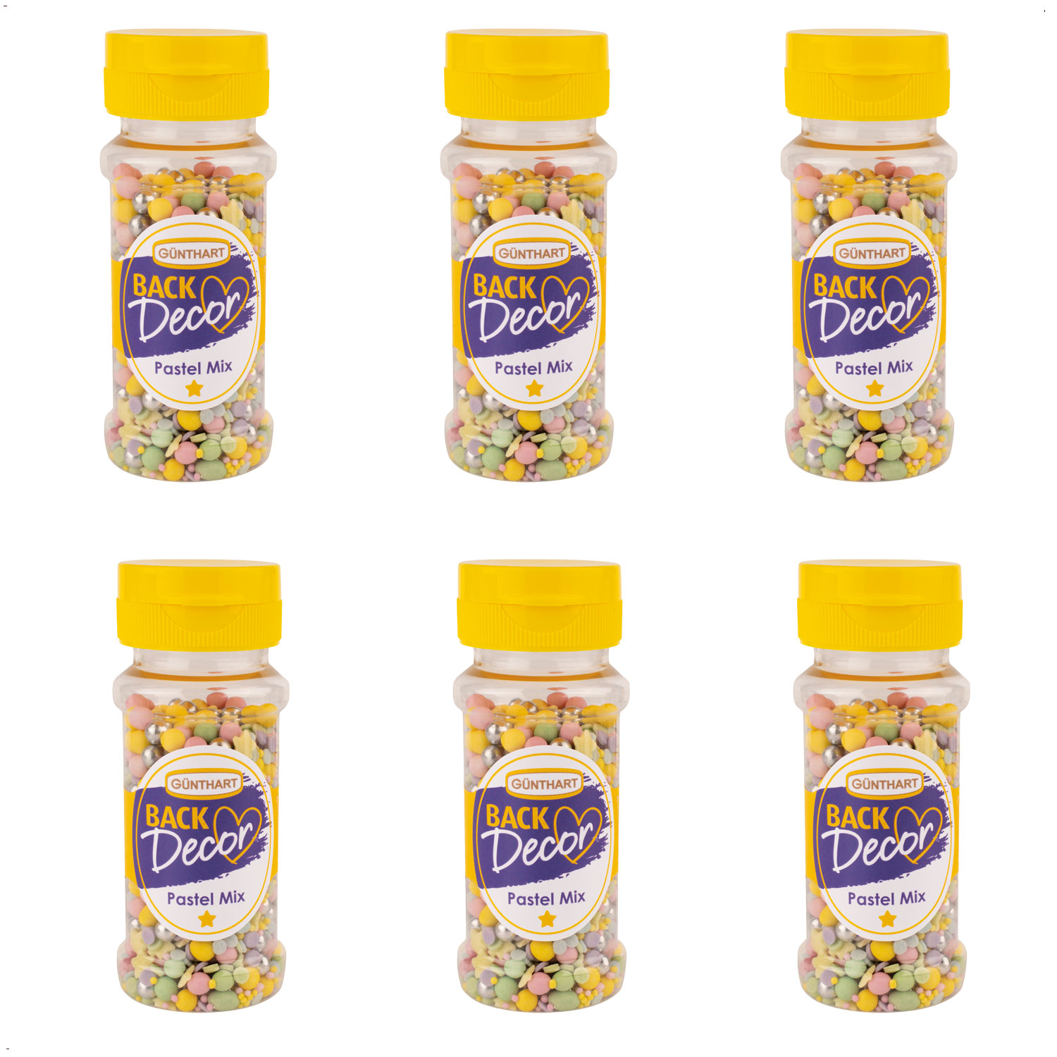Mit dem Streudekor Pastel Mix setzt du farbige Akzente auf all deine süßen Kreationen. Die 60 gr-Dose ist gefüllt mit Zuckerstreuseln in den sanften Farben Grün, Gelb, Rosa, Lila, Blau und Silber - perfekt für Torten, Muffins oder Desserts