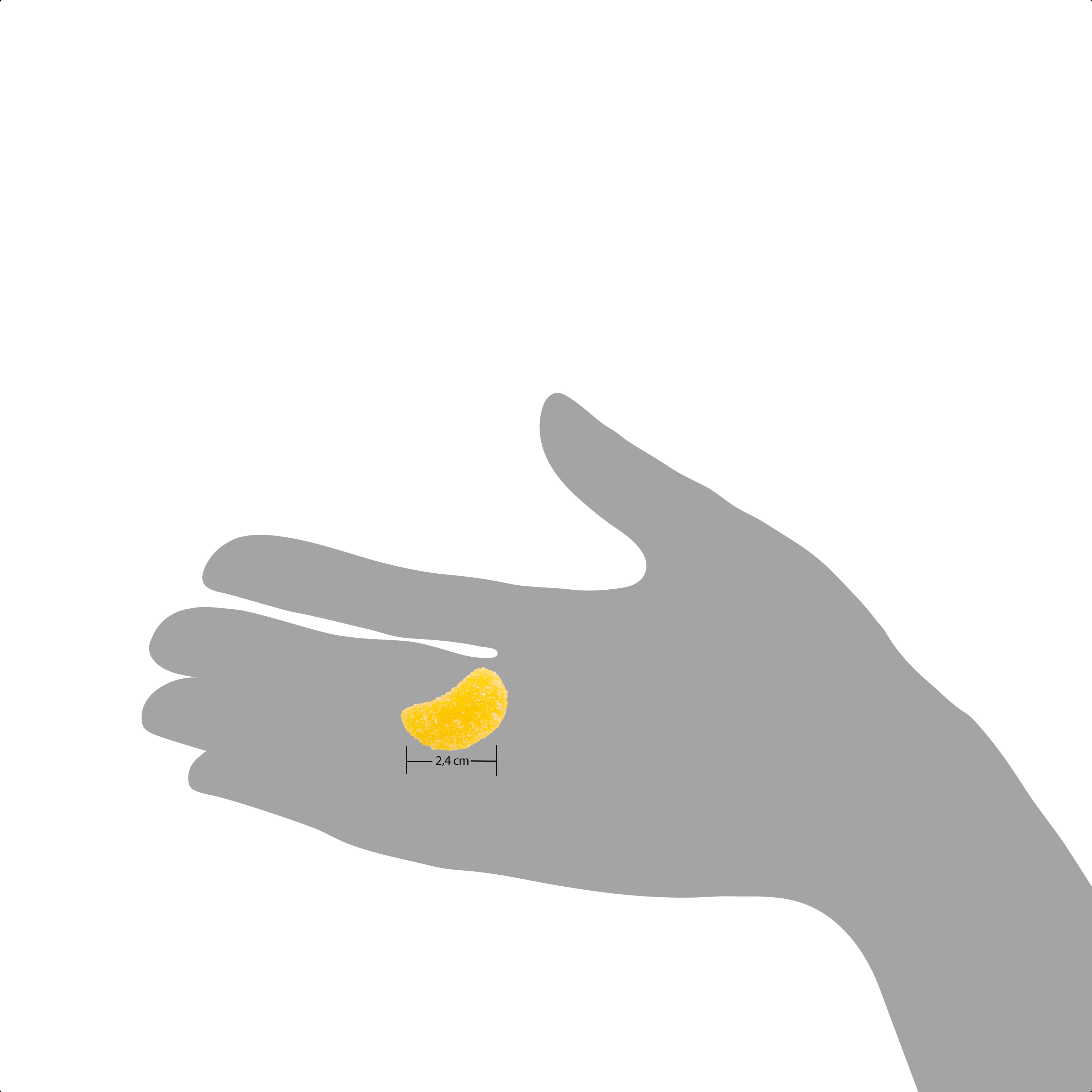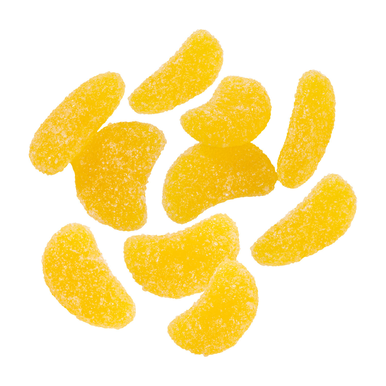 Diese Gelee-Früchte, die das Aussehen von kleinen Zitronenschnitzen haben, sind ein Highlight auf ihrem Kuchen, der Torte, dem Eisbecher oder dem Cupcake. Denn obwohl sie den Zitronengeschmack haben, wird durch die leichte Zuckerschicht eine süß-saures Geschmackserlebnis. Die Garnierfrüchte aus Gelee können jedoch auch als Nascheinheit für zwischendurch ideal sein.