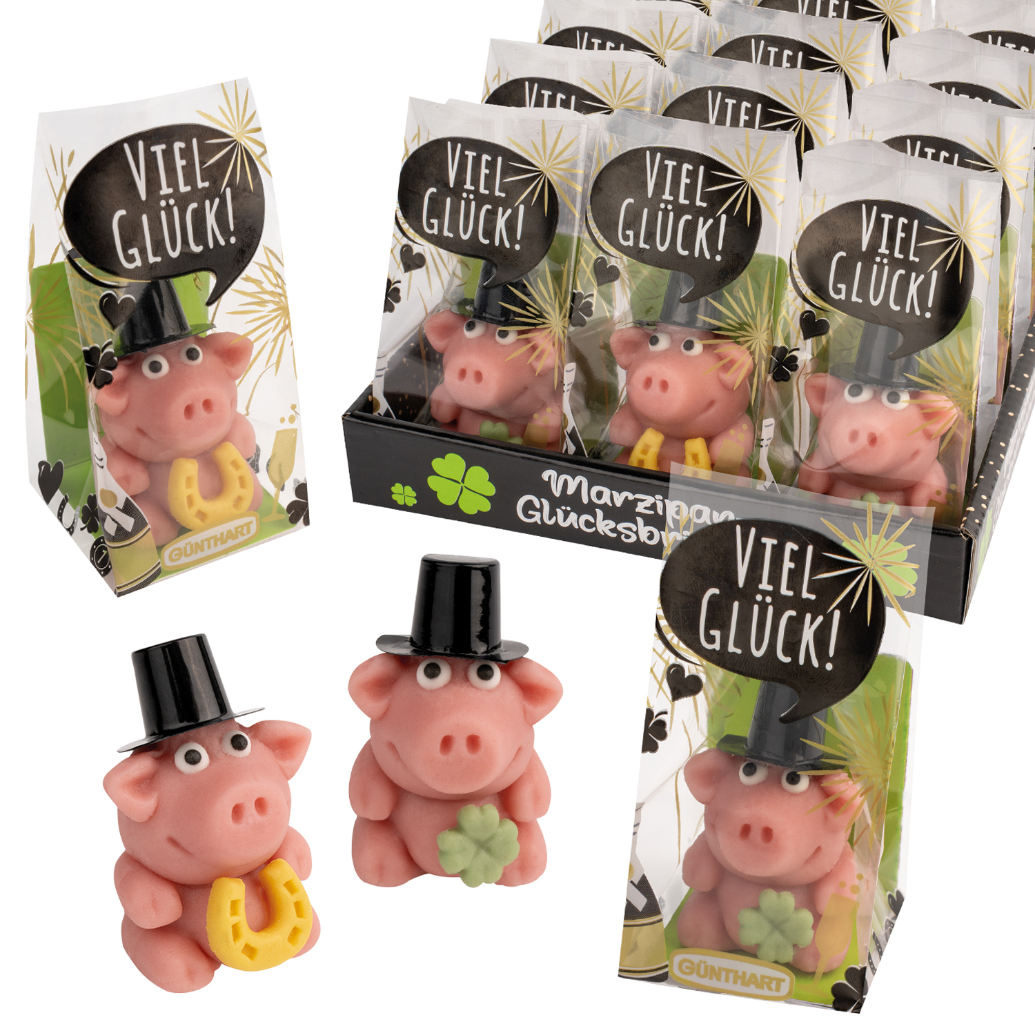 Starte ins neue Jahr mit einer süßen Portion Glück! Die Günthart Marzipan-Schweine mit Zylinder sind die perfekte Wahl, um deinen Liebsten ein Lächeln ins Gesicht zu zaubern. Du erhältst ein Set mit 15 liebevoll gefertigten Schweinchen aus feinstem Marzipan, jedes einzeln im Cellophanbeutel verpackt. Diese kleinen Glücksbringer sind nicht nur ein optisches Highlight, sondern auch ein köstlicher Genuss.